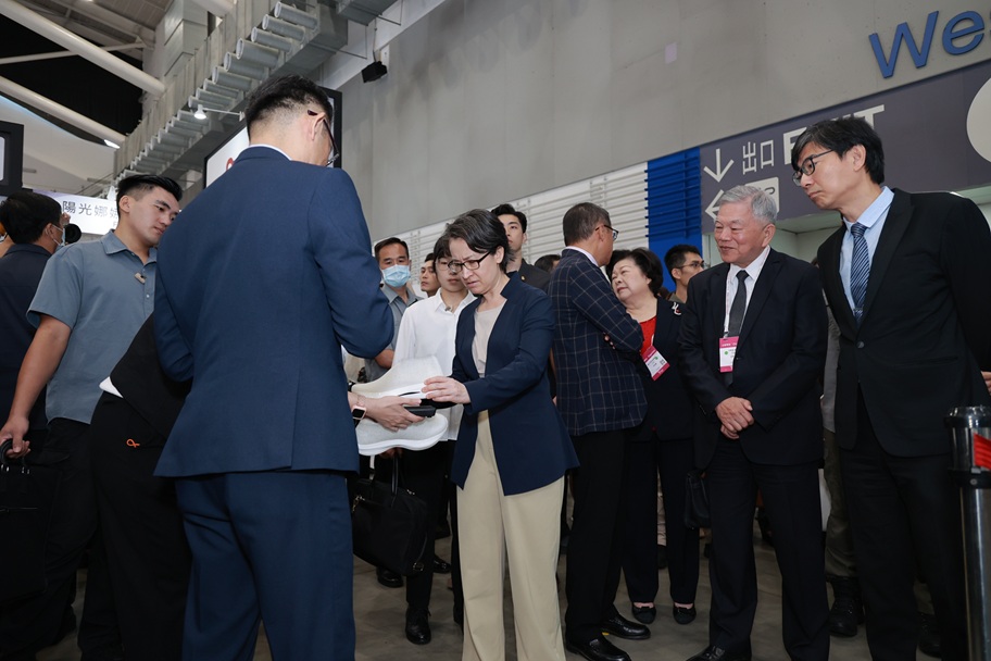 經濟部產業技術司郭肇中司長表示,儘管臺灣在全球機能布市佔率逾七成,但面對數位轉型、低碳趨勢與激烈的國際競爭,產業必須積極升級,開發高附加價值產品。這次展出的創新成果緊扣政府推動的淨零排放、數位AI與永續發展方向,並以技術突破回應美國關稅挑戰,協助產業多元開拓全球市場。例如紡織所打造的國內首創「A Slice of Shoe」3D一體成型鞋,是運用熔噴纖維成型技術,讓鞋面一次成型,製作時間縮短至驚人的6分鐘!相較傳統八道工序,工時節省超過80%。輕巧的鞋面僅重不到50公克,卻能承受高達5公斤的拉力,且可瞬間與鞋底完美結合,省去35%的組裝時間。更令人驚喜的是,鞋面、鞋底與膠水均採用單一材質設計,不僅方便回收,還結合自動化製程,大幅降低能源消耗與人力需求。這項創新技術已獲日本知名運動品牌美津濃(Mizuno)採用,並榮膺2025年iF設計大獎,未來更將擴展至自行車坐墊與運動防護裝備,彰顯臺灣在智慧製鞋與綠色永續領域的國際領導力。