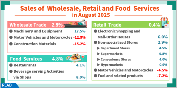 2.Retail trade sales were NT$391.5 billion in August 2025, and increased by 0.4% on a yoy basis.