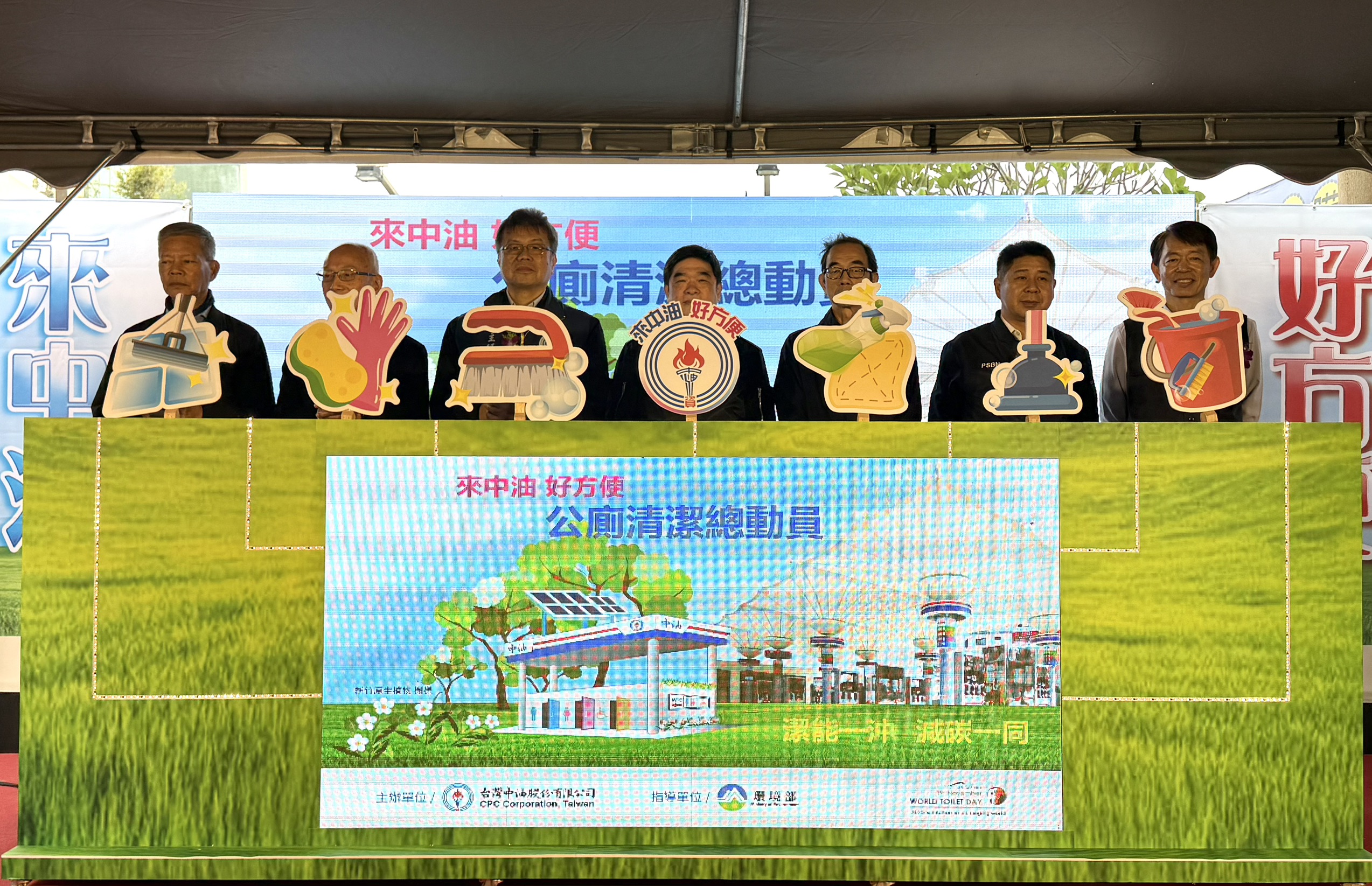 台灣中油連續第5年響應世界廁所日舉辦公廁清潔活動,副總經理羅博童在新竹市公道五加盟站進行啟動儀式,邀請環境部和新竹市政府共同參與,攜手全台1,937座加油站一起彎腰清潔公廁,以具體行動落實聯合國永續發展目標,提供民眾乾淨衛生、便利舒適、安全友善的如廁環境。
