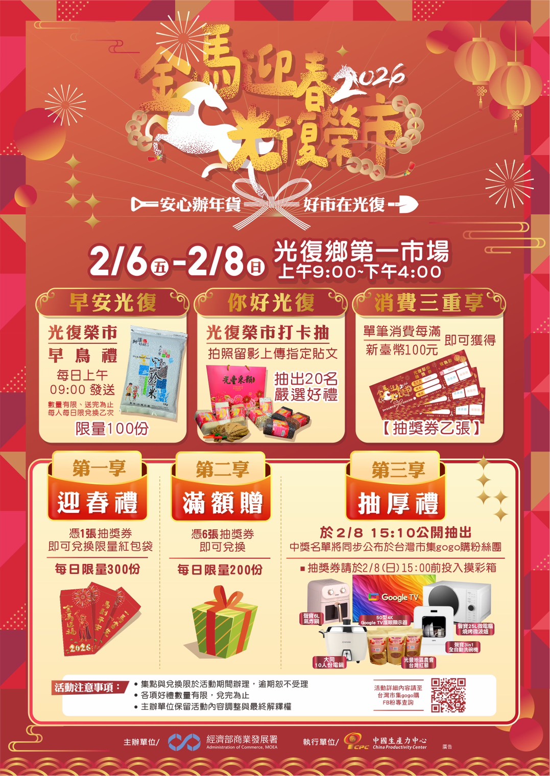 辦年貨 在光復 「2026金馬迎春.光復榮市」年貨市集2/6-2/8熱鬧展開!