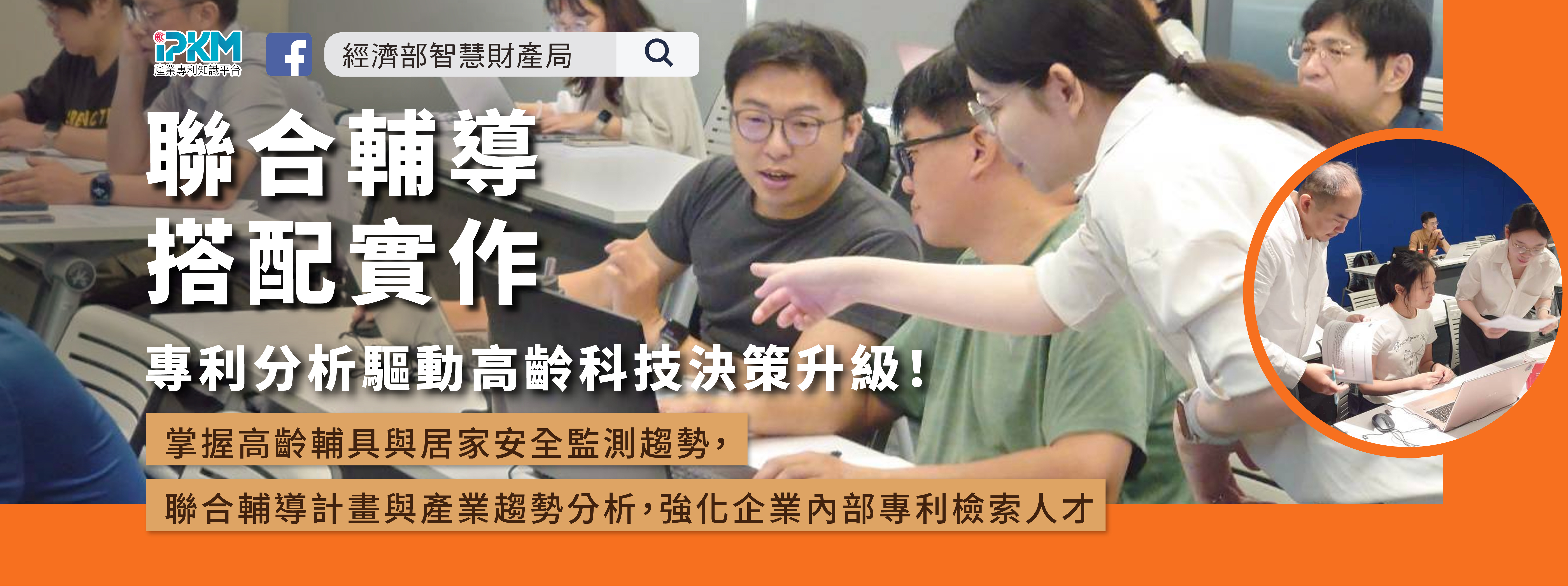 為促進我國高齡科技產業發展,提升企業關鍵技術研發及專利布局能力,本局於114年持續舉辦高齡科技企業聯合輔導,聚焦「智能行動輔具」及「居家安全監測」兩大重點應用領域,分享專利申請趨勢及布局分析,並結合實作輔導方式,協助業者培養專利前案檢索及布局分析能力,吸引共計30家相關企業踴躍參與。