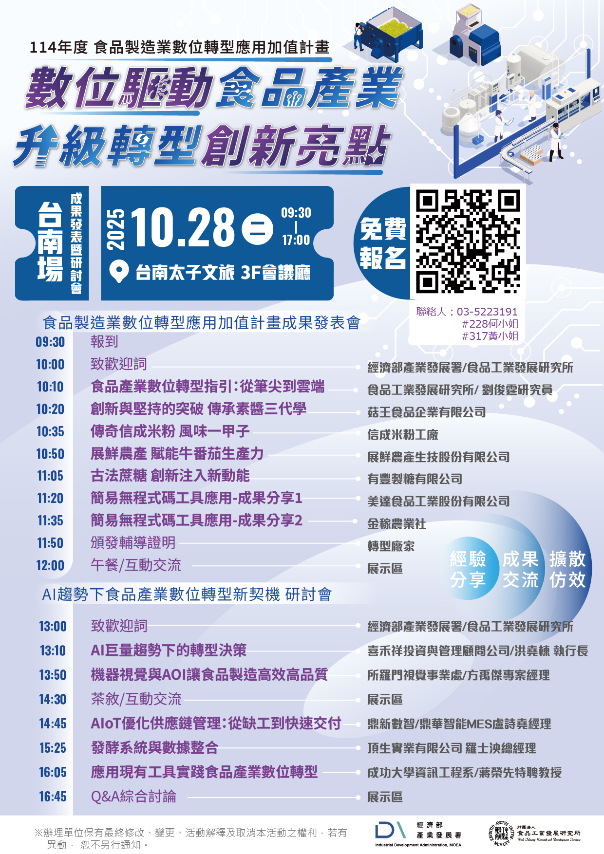 114年食品製造業數位轉型應用加值計畫「數位驅動食品產業升級轉型創新亮點成果發表會」