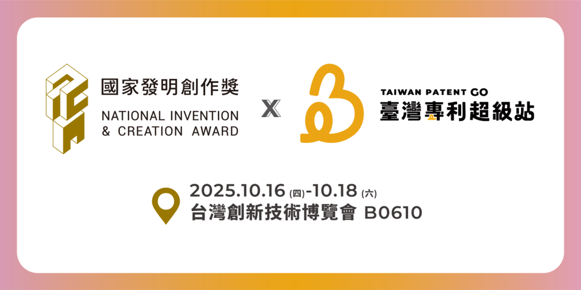 經濟部智慧財產局(下稱智慧局)主辦之113年「國家發明創作獎」(以下稱國發獎)40件得獎專利,將於10月16日至18日舉辦2025台灣創新技術博覽會(Taiwan Innotech Expo , TIE,簡稱創博會)之「臺灣專利超級站」正式亮相,完整呈現得獎專利之技術亮點。誠摯邀請有興趣投資、合作的企業到現場參觀洽商。