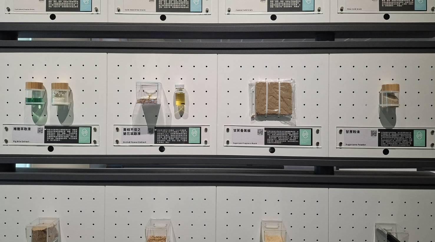 簽署儀式開始前,塑膠中心帶領出席的台糖長官及同仁參觀「永續材質圖書館」,除說明該館成立背景緣由及現有館藏外,另介紹台糖展示的代表性材料,包括應用於美容保養品的蘭花萃取液、製成洗髮精的豬膽萃取液,以及可衍生作為除臭清潔品的蔗渣纖維粉等,深受與會人員的肯定。