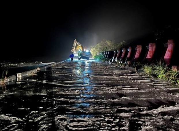 水利署署長林元鵬第一時間立即趕赴現場瞭解狀況,並指揮相關人員緊急處置,昨晚主要進行馬太鞍溪左岸堤頂以及明利社區道路淤泥清除工作,今(11日)晨已進場搶險進行導水,以鼎塊積極進行相關防堵措施,防止河水溢出後進入市區。由於目前水量很大,刻正加強防護措施,避免更下游的萬榮國中以及鐵路系統受到影響。