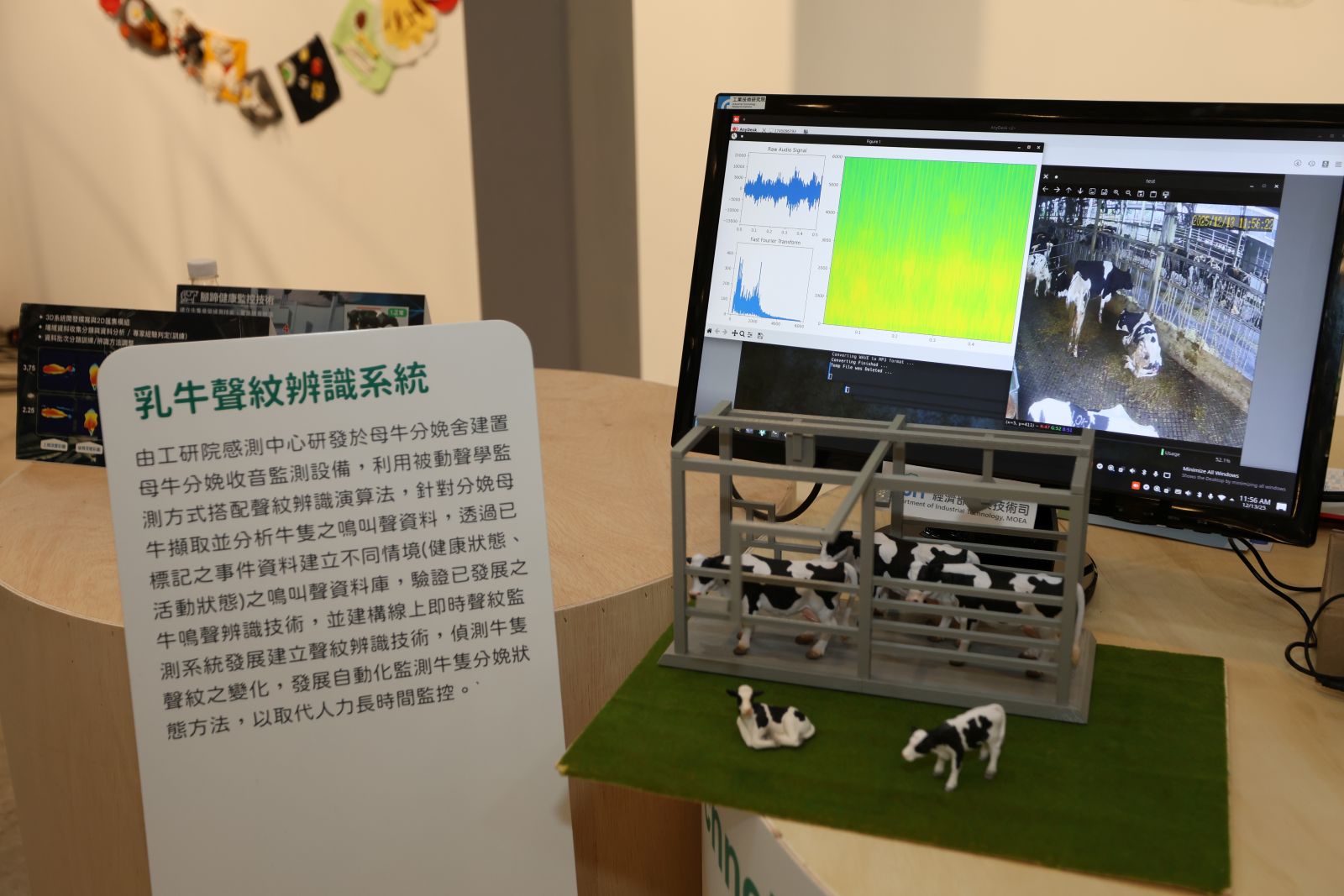 乳牛聲紋辨識技術:透過聲紋資料庫與AI演算法,可從牛隻叫聲判讀情緒狀態,協助牧場提升管理效率,已導入彰化元亨牧場、屏東和荃種牛場進行測試。