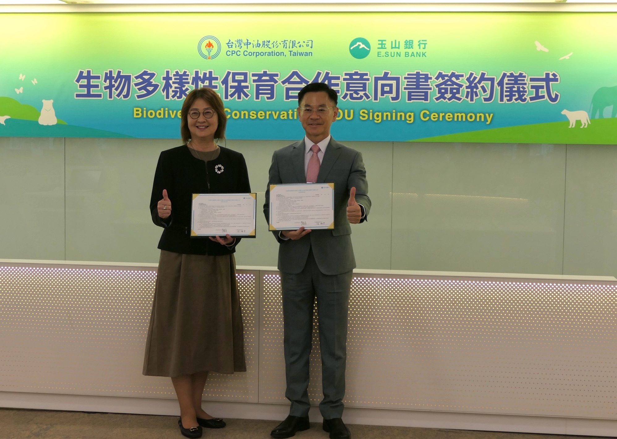 台灣中油攜手玉山銀行簽署生物多樣性保育合作意向書,宣示將攜手推動環境永續工作
