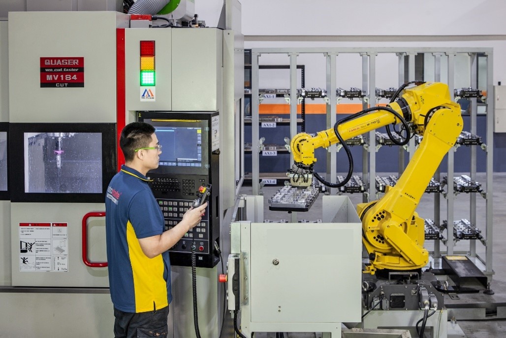 鼎霖公司透過機械手臂執行搬運作業運作提高整體生產成效