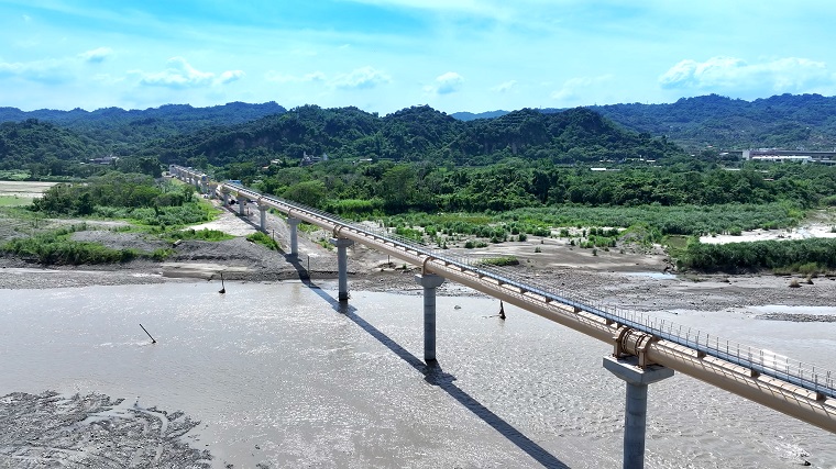 二、荖濃溪里嶺伏流水統包工程-水管橋工程:南區水資源分署創新以樁柱式橋墩搭配自充填混凝土施作橋墩,減少開挖深度,降低施工風險。