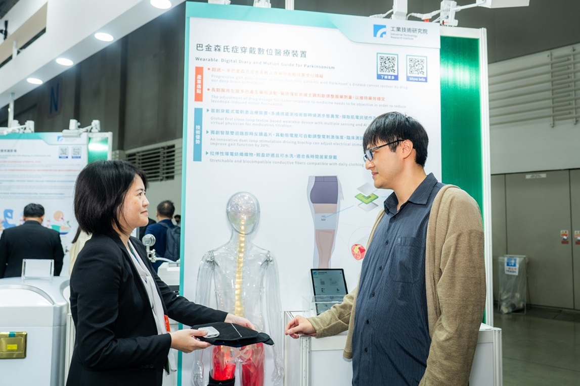 此全球獨創的智慧雙迴路即時反饋晶片,相較於現行僅能輸出固定波形的晶片,能精準即時調整電刺激強度,且具動態反應與低功耗雙重優勢,經臨床測試可連續使用超過6小時,步態改善效果提升約20%。同時,裝置採用可拉伸導電紡織材質,輕盈舒適,適合長時間居家穿戴,並能自動記錄動作數據,協助醫師調整藥物與治療方案,實現個人化照護。目前該技術已與台大醫院展開臨床合作,未來可延伸應用於肌少症、退化性關節炎、復健輔具及智慧運動訓練等領域,開創數位醫療新可能。